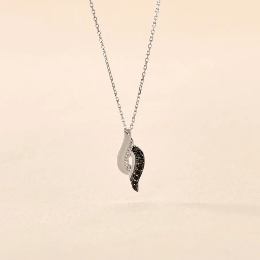 Collier Or Blanc 375/1000 Diamants Et Diamants Noirs 42cm