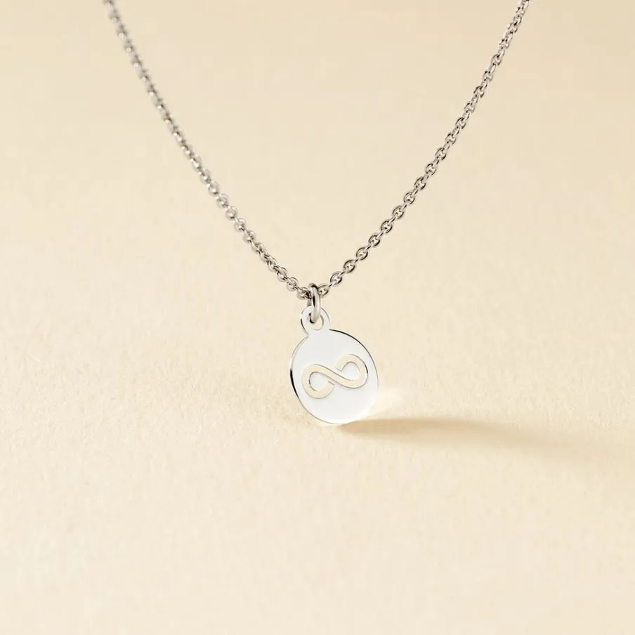 Collier Argent Blanc 925/1000 Pastille Motif Infini Ajoure Maille Forcat 42cm
