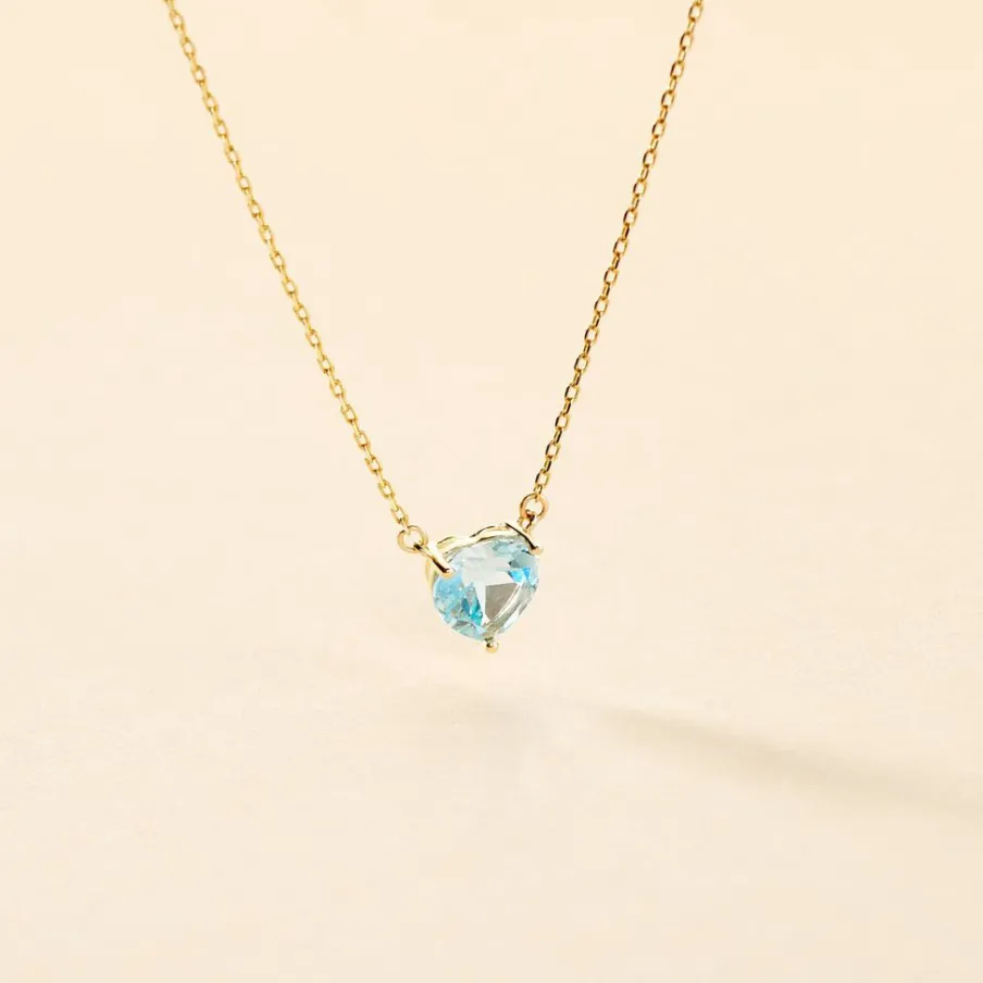 Collier Or Jaune 375/1000 C艙ur Topaze 0.9cts Serti Griffes Chaine Maille Forcat 40+2cm