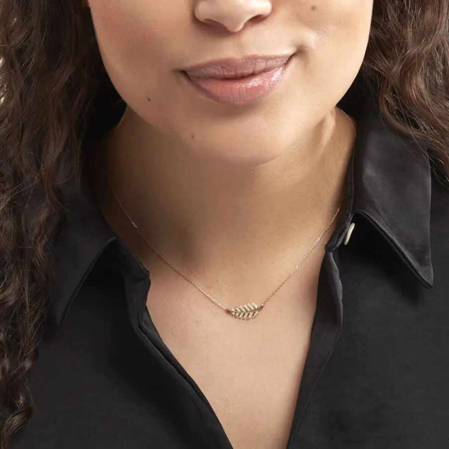 Collier Or Jaune 375/1000 Motif Feuille Ajoure + Pavage Oxydes De Zirconium 42cm
