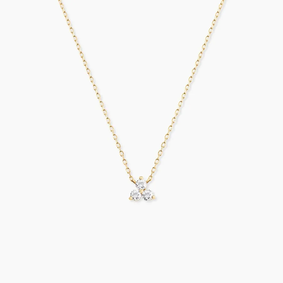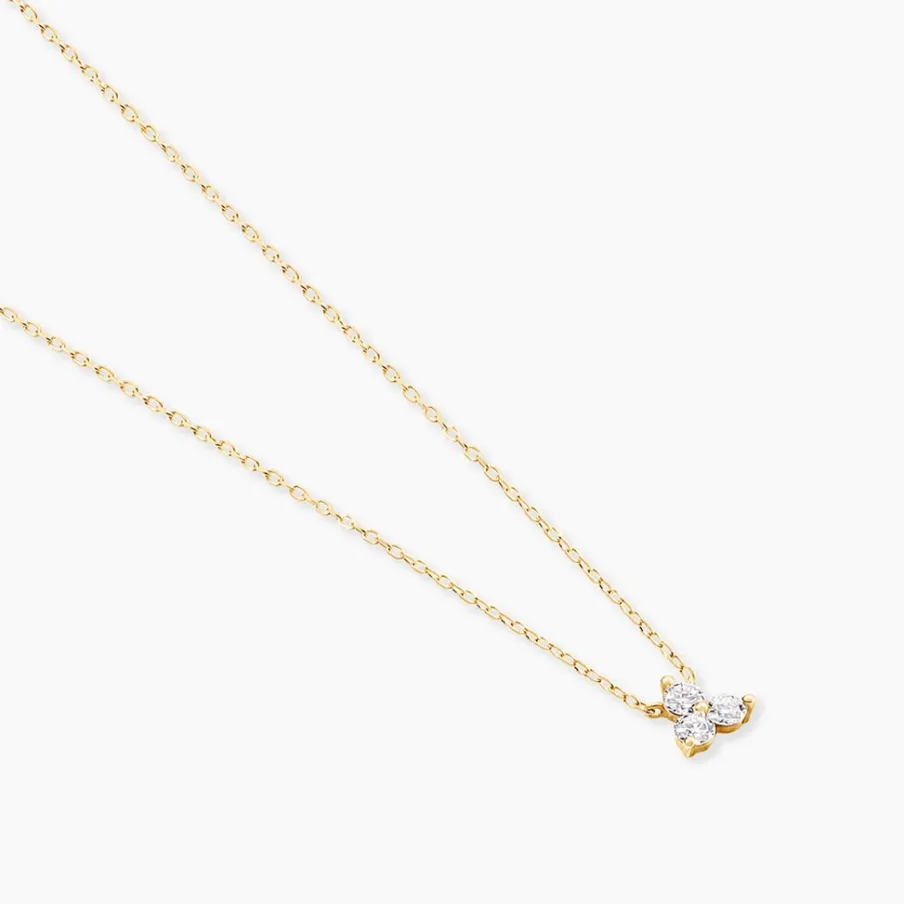 Collier Or Jaune 375/1000 Trilogie Diamant Synthetique 0,192Cts Serti Griffes Maille Forcat 40+2Cm