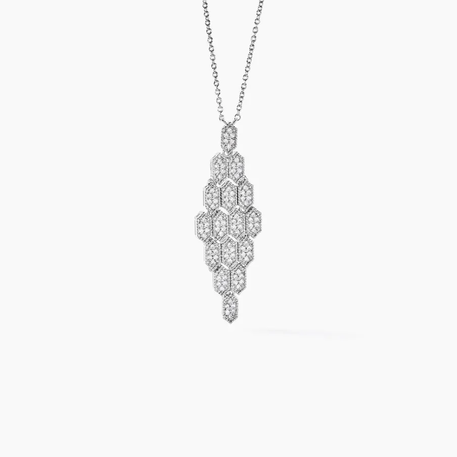 Collier Argent Blanc 925/1000 Multi Hexagones Pavage Oxydes De Zirconium Maille Forçat 42+3cm