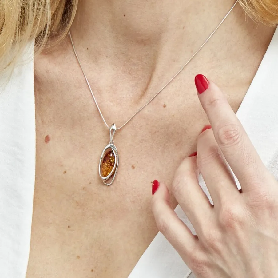 Collier Argent Blanc 925/1000 Ambre Ovale Simply 45cm