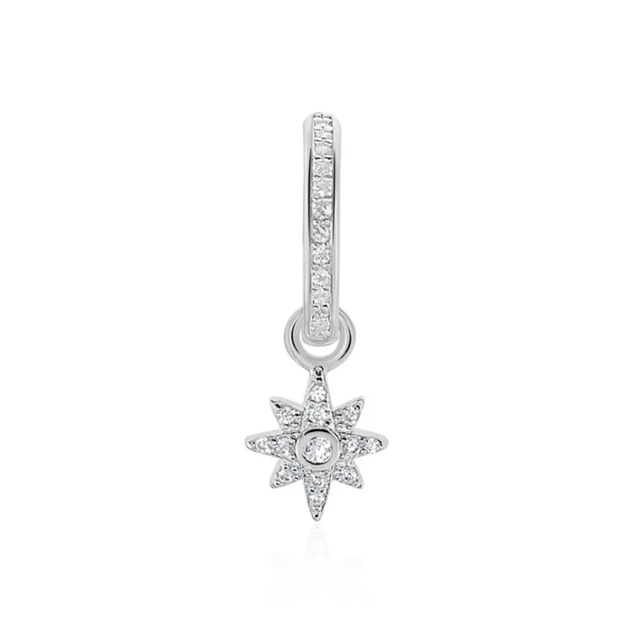 Creole Unitaire Argent Blanc 925/1000 Flocon De Neige Pavage Oxydes De Zirconium
