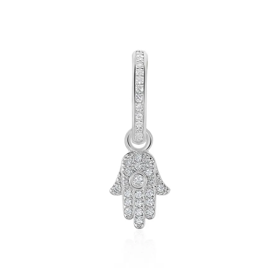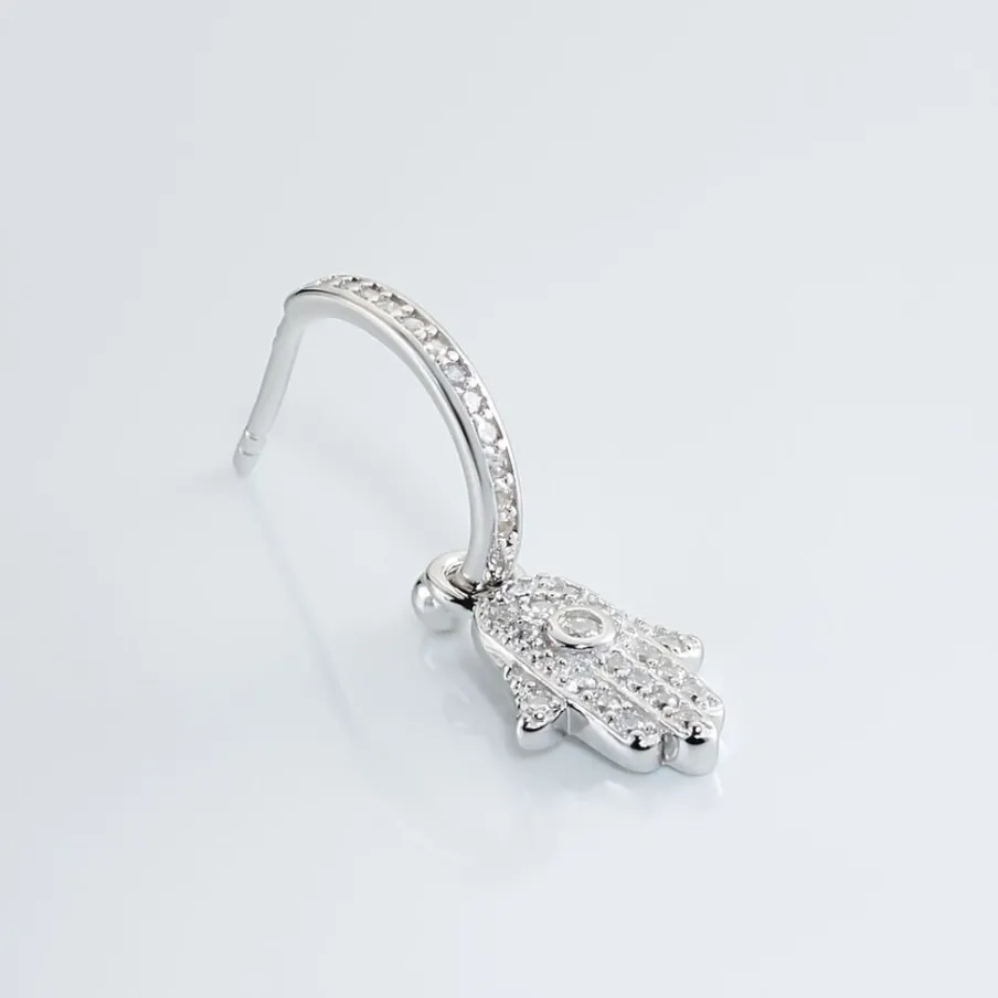 Creole Unitaire Argent Blanc 925/1000 Main De Fatma Pavage Oxydes De Zirconium