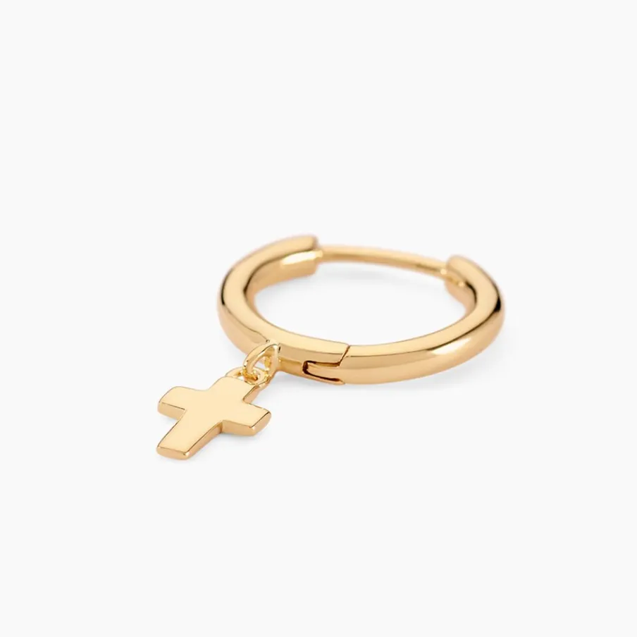 Créole Unitaire Plaqué Or Doré Pampille Croix Diamètre 10mm