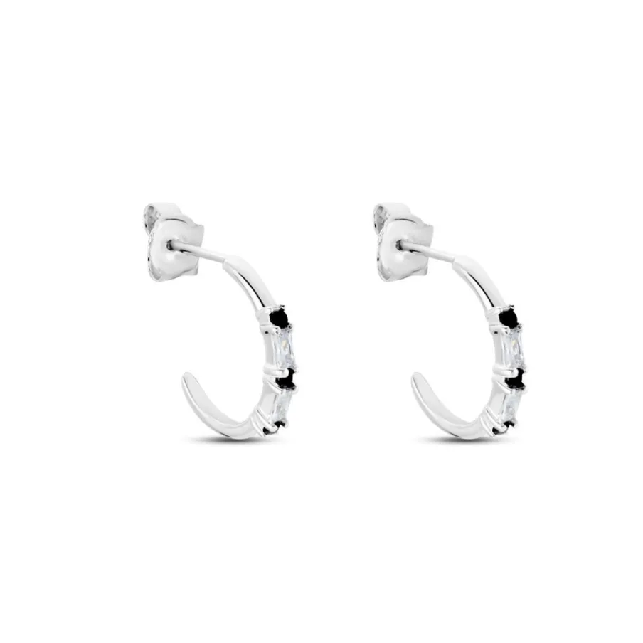 Créoles Argent 925/1000 Oxydes De Zirconium Alternés Noirs Et Blancs
