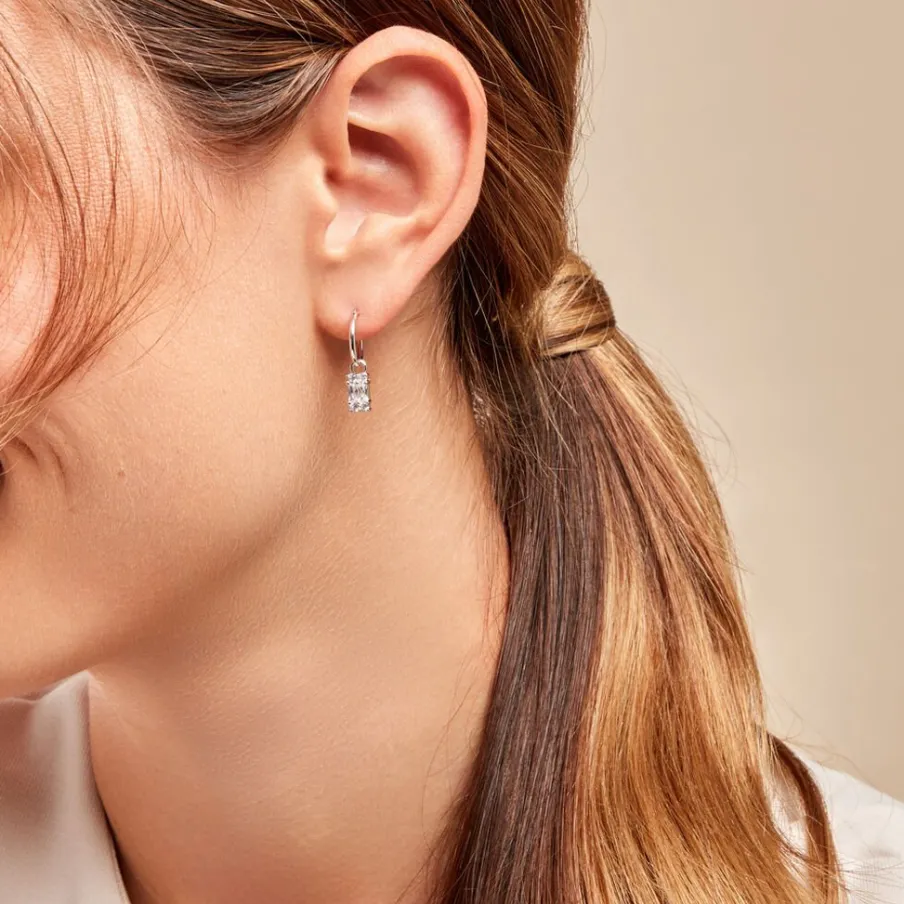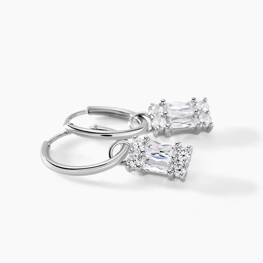 Creoles Argent Blanc 925/1000 Oxydes De Zirconium Taille Baguette Diametre 8.6mm