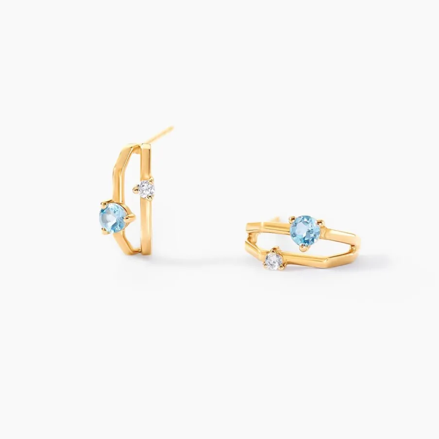 Demi Creoles Or Jaune 375/1000 Topaze Sky Et Oxyde De Zirconium 2 Rangs Ajoures
