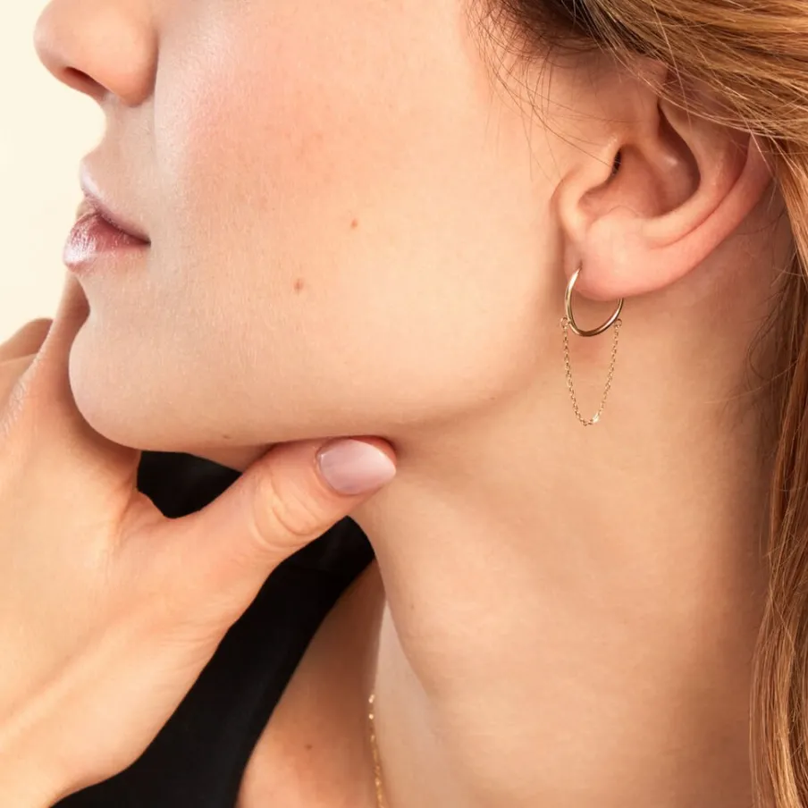 Creoles Pendantes Or Jaune 375/1000 Fil Rond Chaine Forcat Diametre 12mm