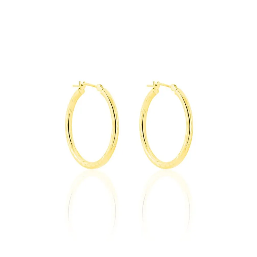 Créoles Or Jaune 375/1000 Fil Rond Effet Diamanté Largeur 2mm Diamètre 20mm