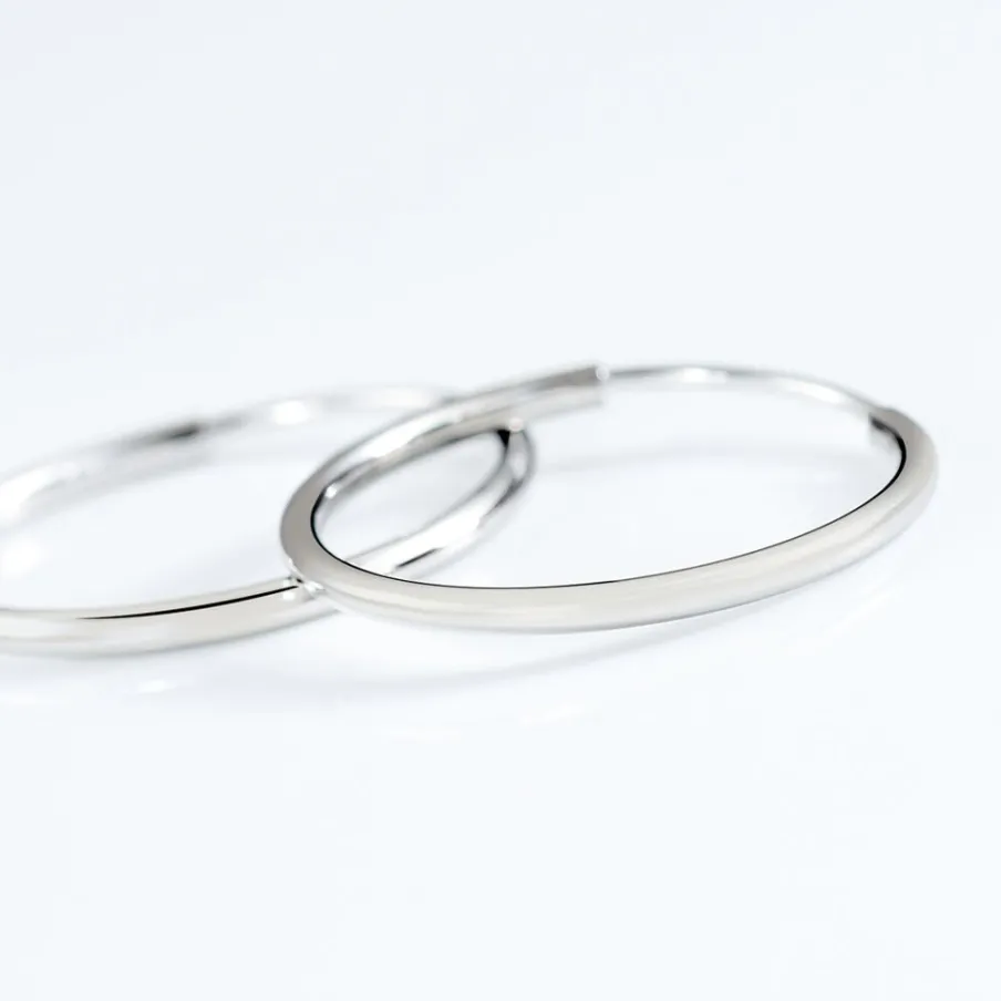 Créoles Or Blanc 375/1000 Fil Flexible Lisse Largeur 1.2mm Diamètre 16mm
