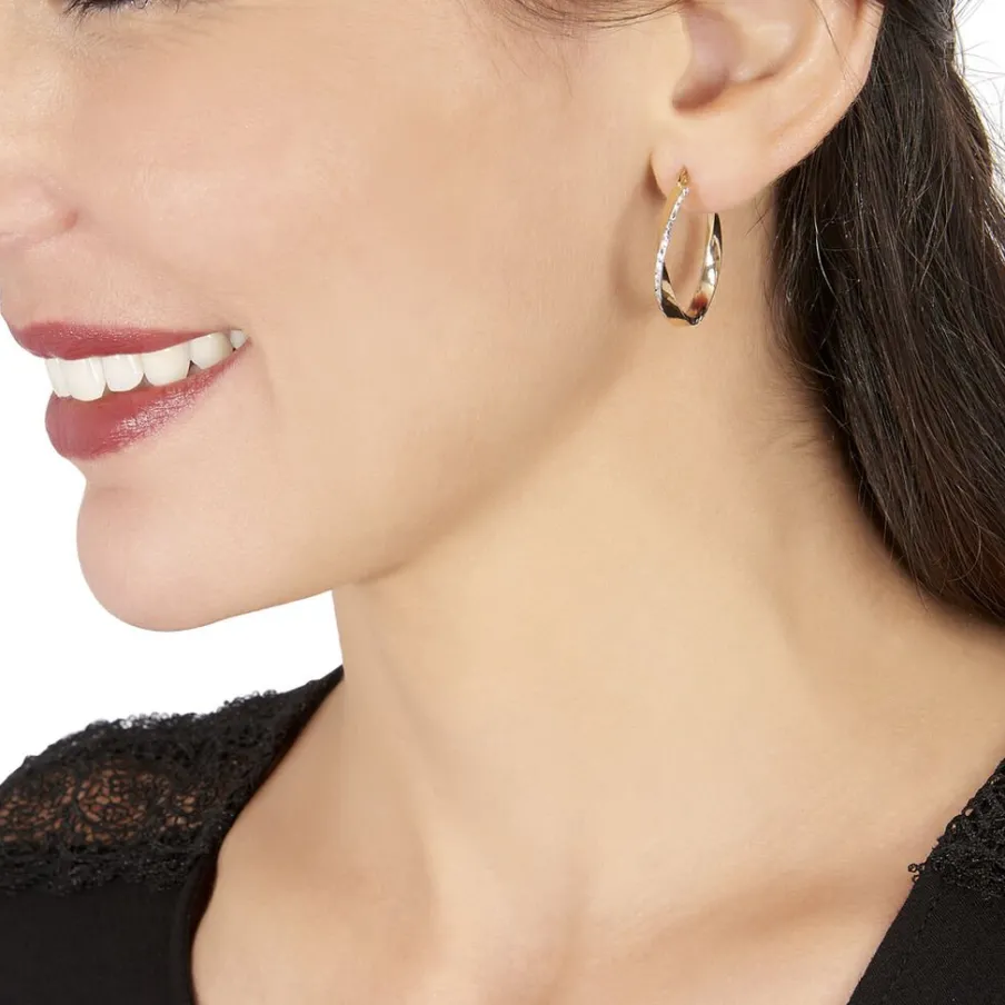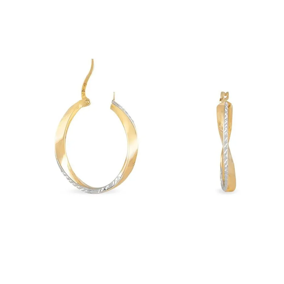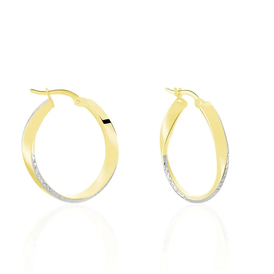 Créoles Or Jaune 375/1000 Fil Vrillé Effet Diamanté Largeur 2.9mm Diamètre 26.6mm