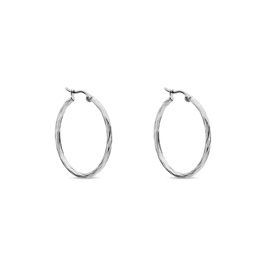 Créoles Acier Blanc Effet Strié Diamètre 30mm