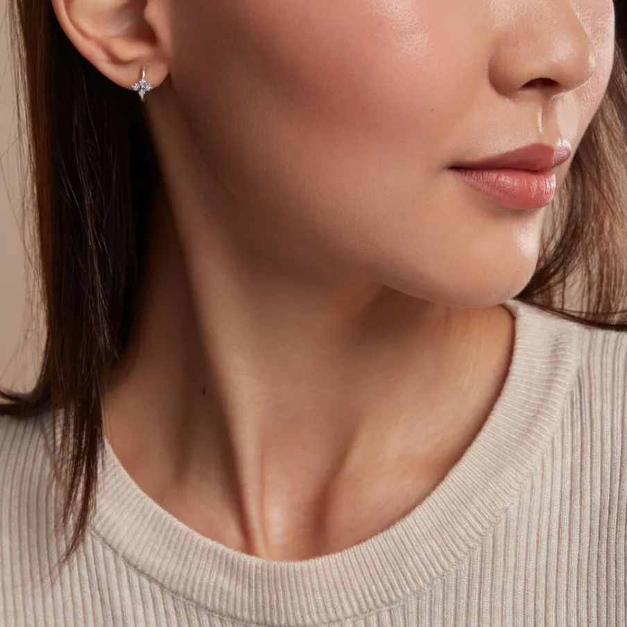 Creoles Or Jaune 375/1000 Fleurs Diamants Ronds