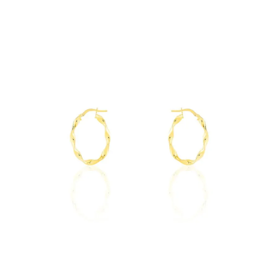 Créoles Or Jaune 375/1000 Ovales Fil Vrillé Largeur 1.5mm Diamètre 23x15mm