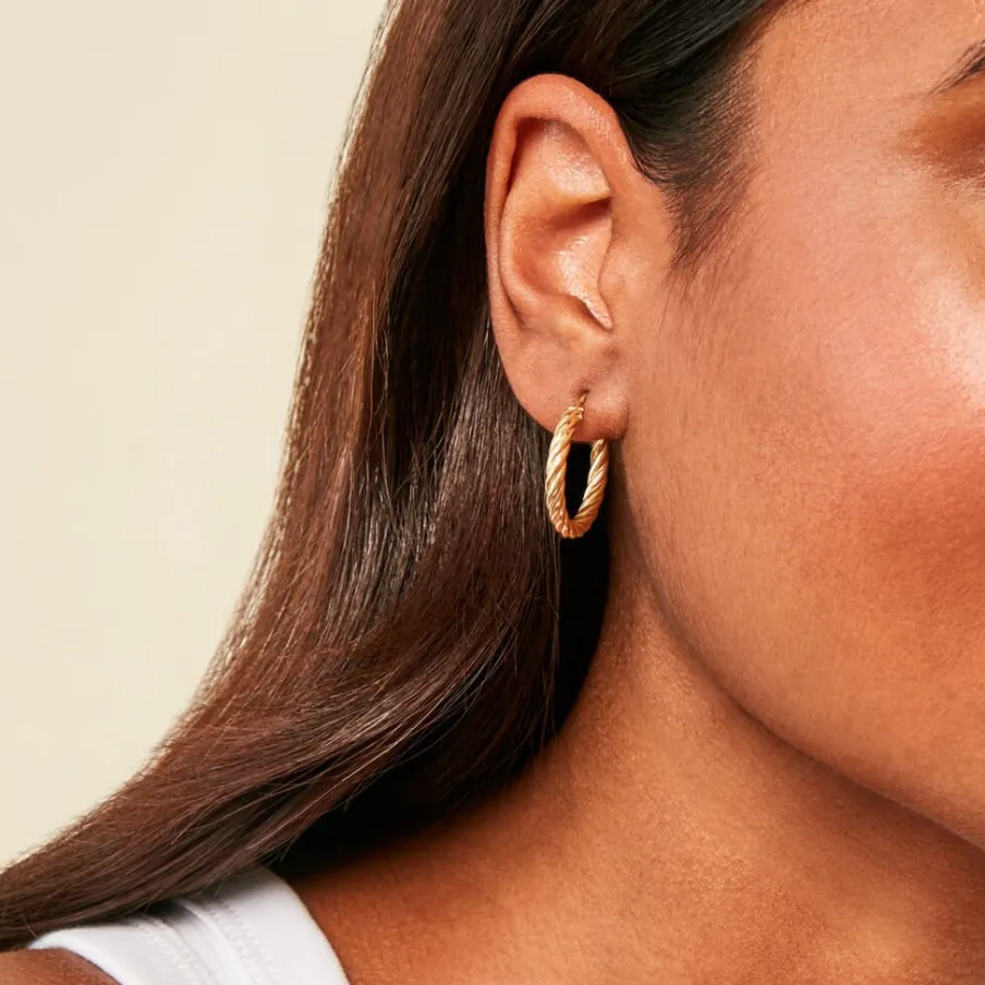 Créoles Or Jaune 750/1000 Fil Rond Torsadé Largeur De Fil 2Mm Diamètre 15Mm