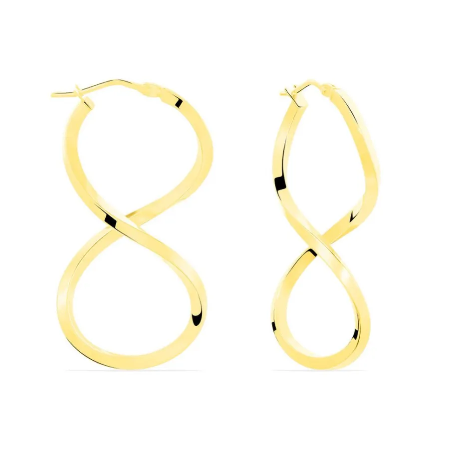 Créoles Or Jaune 375/1000 Forme Huit Fil Triangle Lisse Largeur 2mm Diamètre 38×15.5mm
