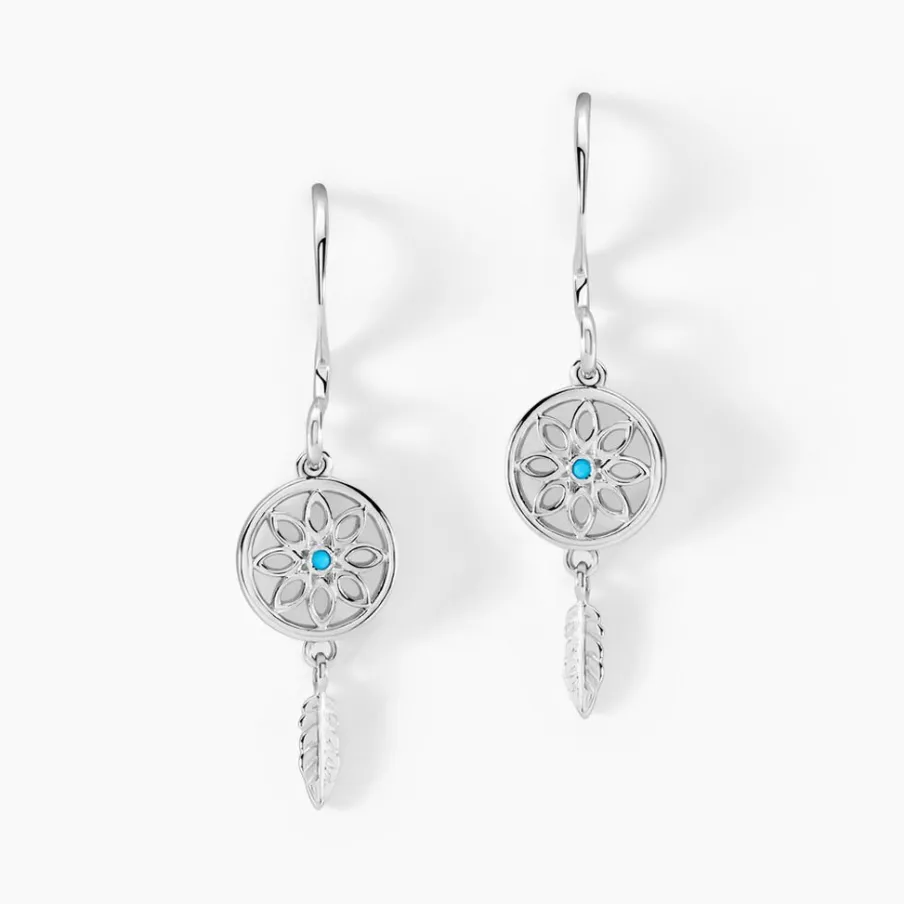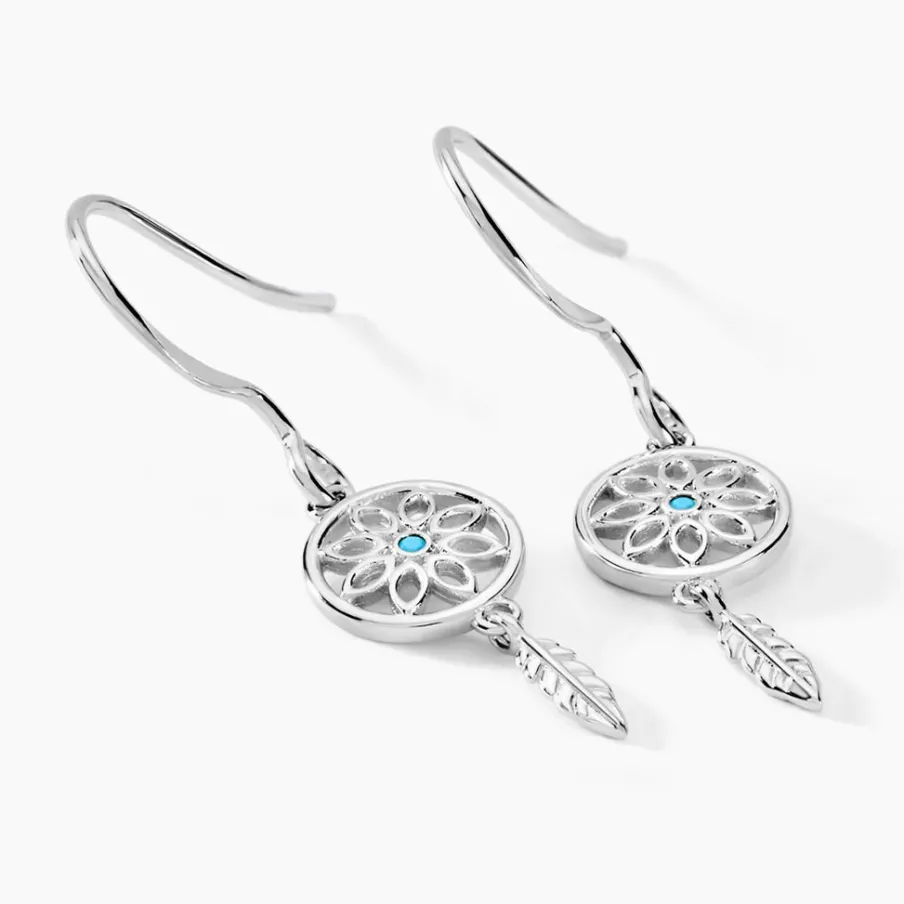 Boucles D’oreilles Pendantes Argent Blanc 925/1000 Attrape-reves Oxydes De Zirconium Turquoise
