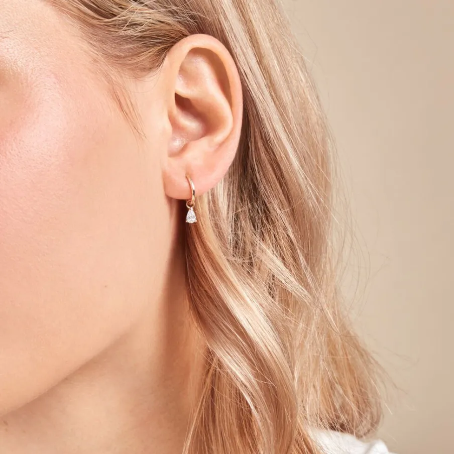Creoles Or Jaune 375/1000 Diamants Synthetiques Poires Sertis Griffes Diametre 8mm