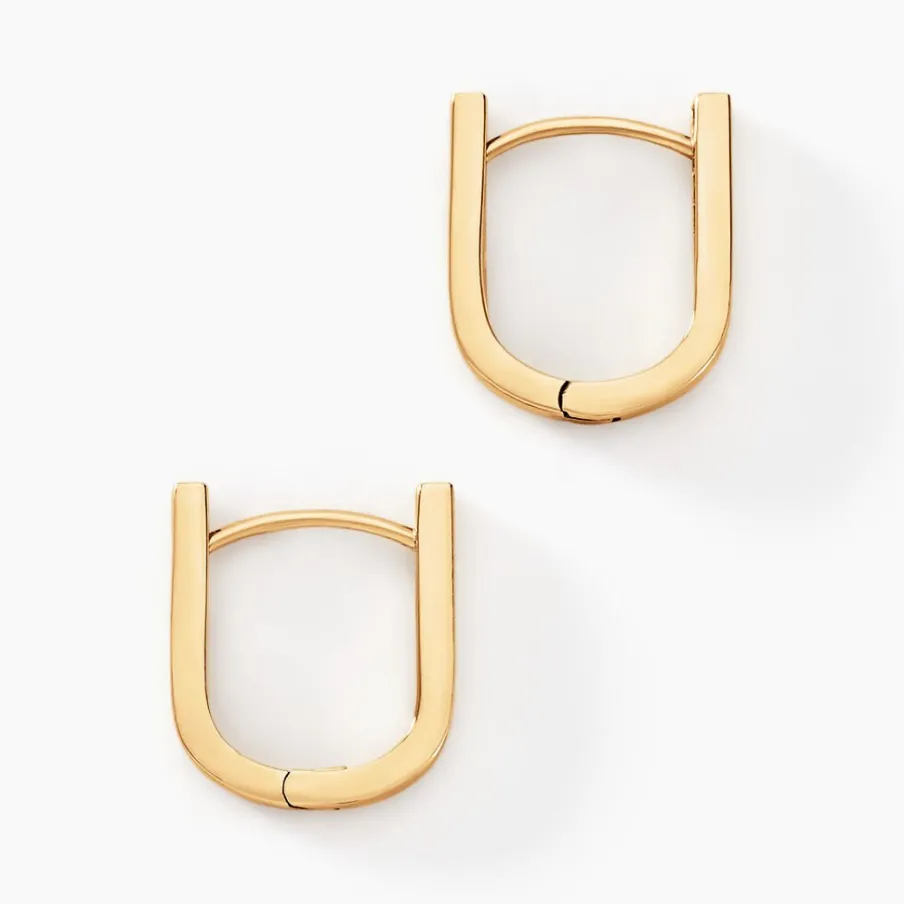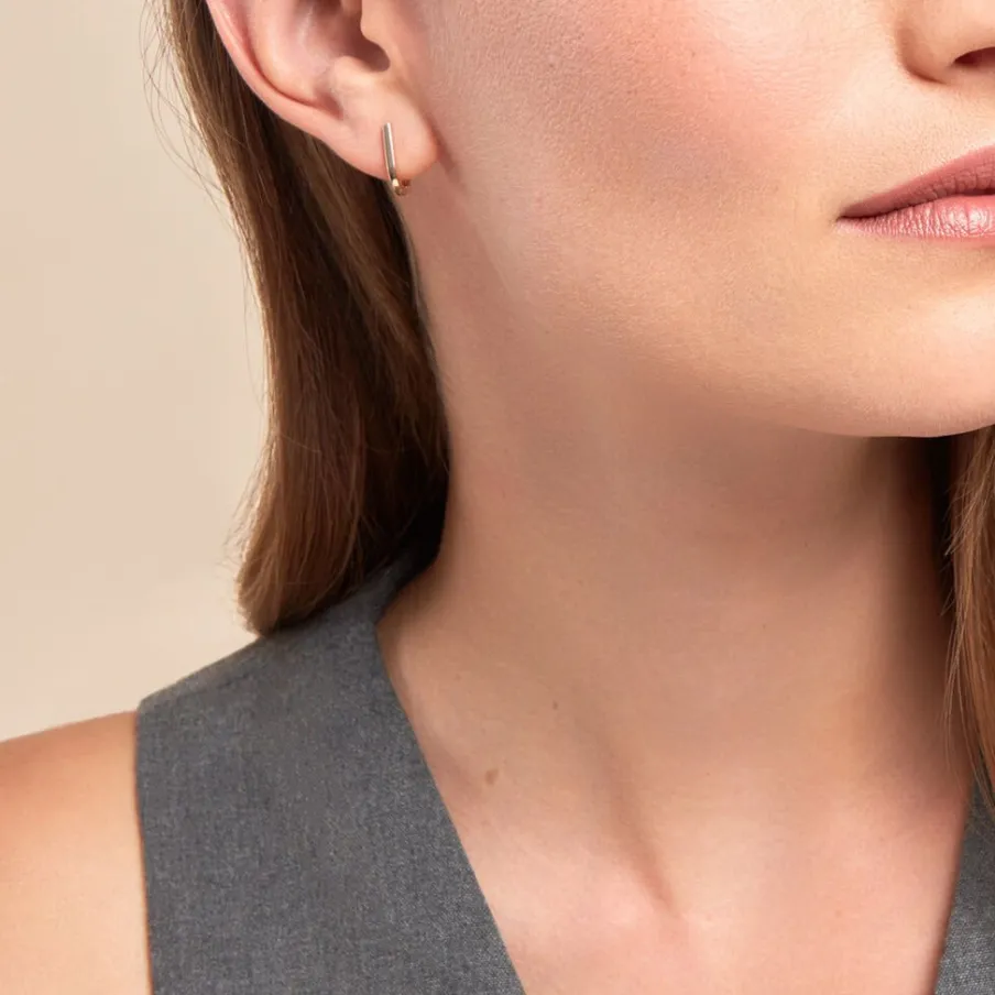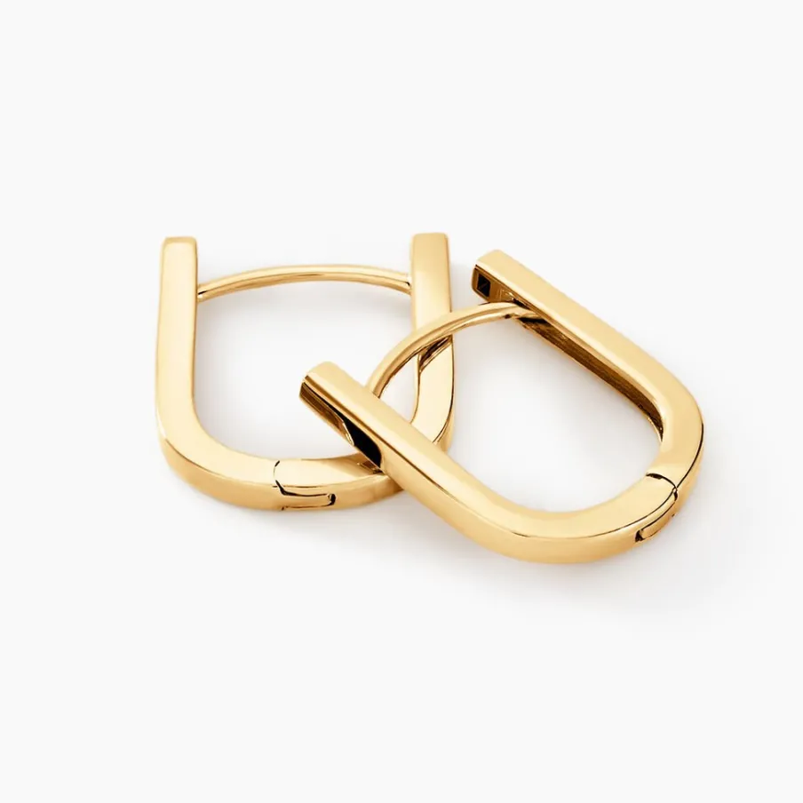 Creoles Rectangulaire Or Jaune 375/1000 Rectangle Arrondi Longueur 1.3cm