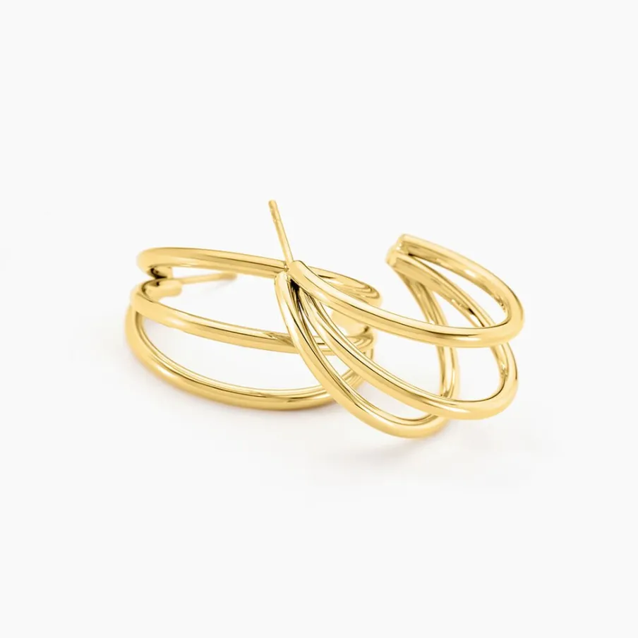 Créoles Acier Inoxydable Jaune Triples Rangs Diametre 20mm