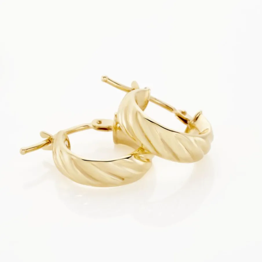 Créoles Or Jaune 375/1000 Fil Demi Jonc Strie Largeur 4mm Diamètre 8mm