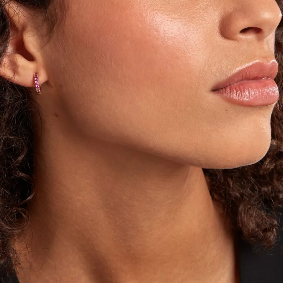 Créoles Plaque Or Pavage Spinelles Synthétiques Rouges Diamètre 12mm