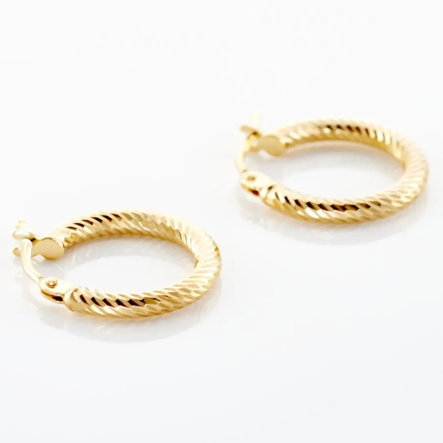 Créoles Or Jaune 375/1000 Fil Rond Effet Diamanté Largeur 2mm Diamètre 10mm