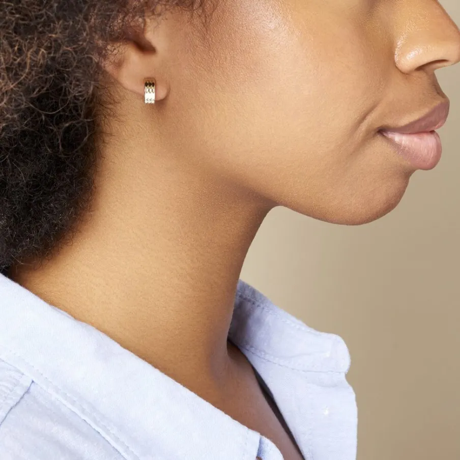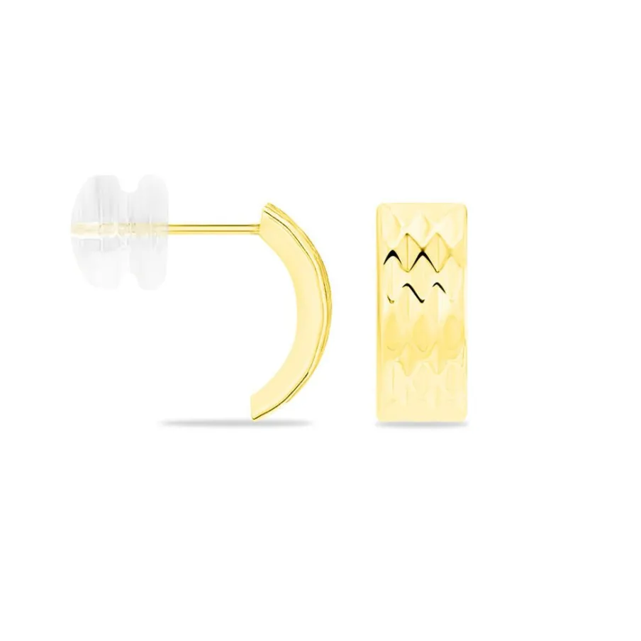 Créoles Or Jaune 375/1000 Demi Cercle Diamantées Losanges Diamètre 11.2mm