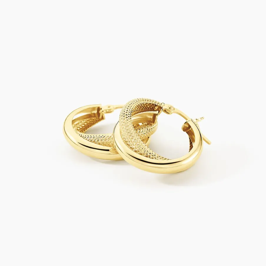 Créoles Or Jaune 375/1000 Croisées Fils Demi Jonc Et Rond Effet Martele Largeur 3mm Diamètre 15mm