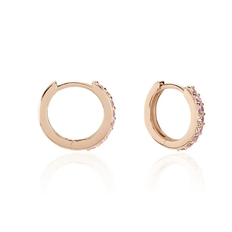 Créoles Argent Rose 925/1000 Oxydes De Zirconium Roses 15mm
