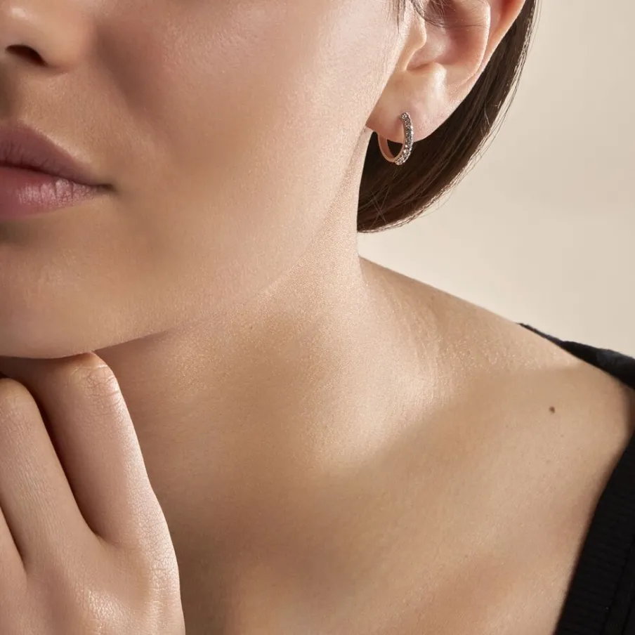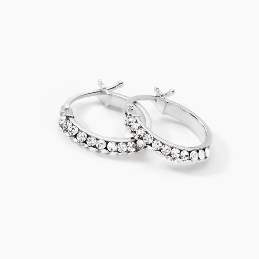 Créoles Or Blanc 375/1000 Fil Carré Strass Largeur 2mm Diamètre 12mm
