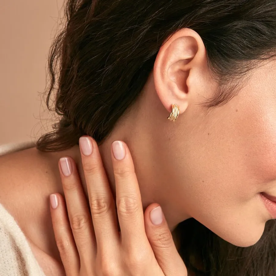 Demi Creoles Or Jaune 750/1000 Effet Diamante