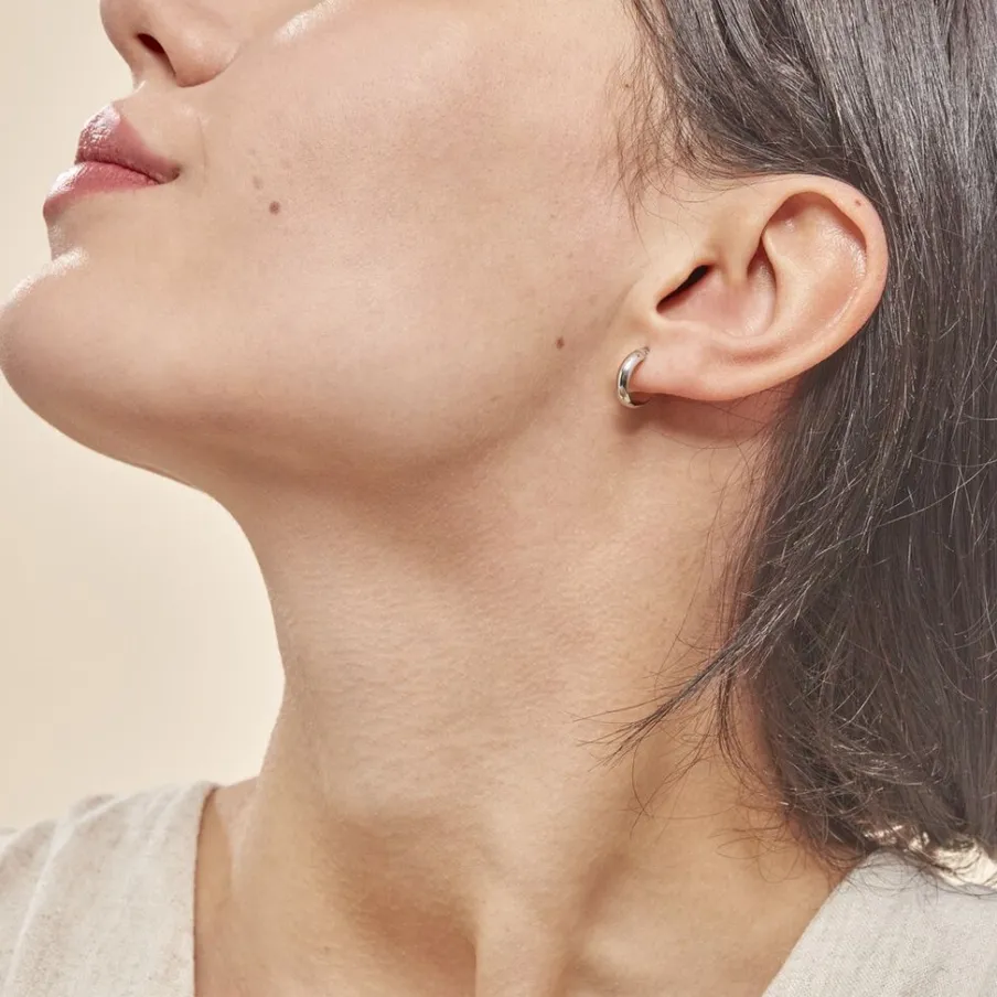 Créoles Or Blanc 375/1000 Fil Demi Jonc Lisse Largeur 3mm Diamètre 8mm