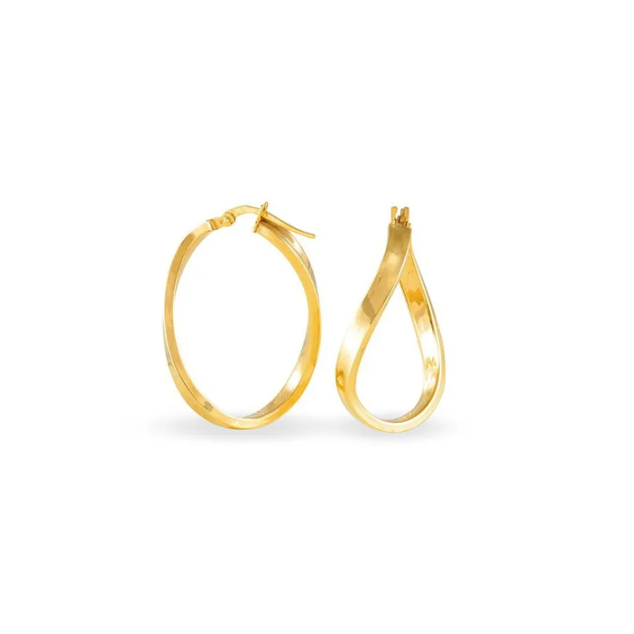 Créoles Or Jaune 375/1000 Ovales Forme Vague Fil Carré Lisse Largeur 3mm Diamètre 27x17mm