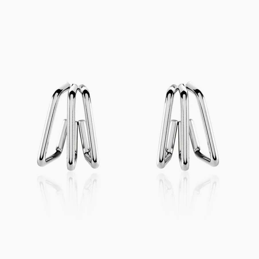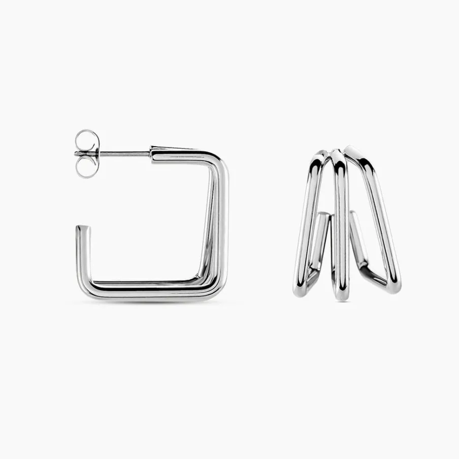 Créoles Acier Inoxydable Blanc Géométrique Triple Rang Diamètre 20mm