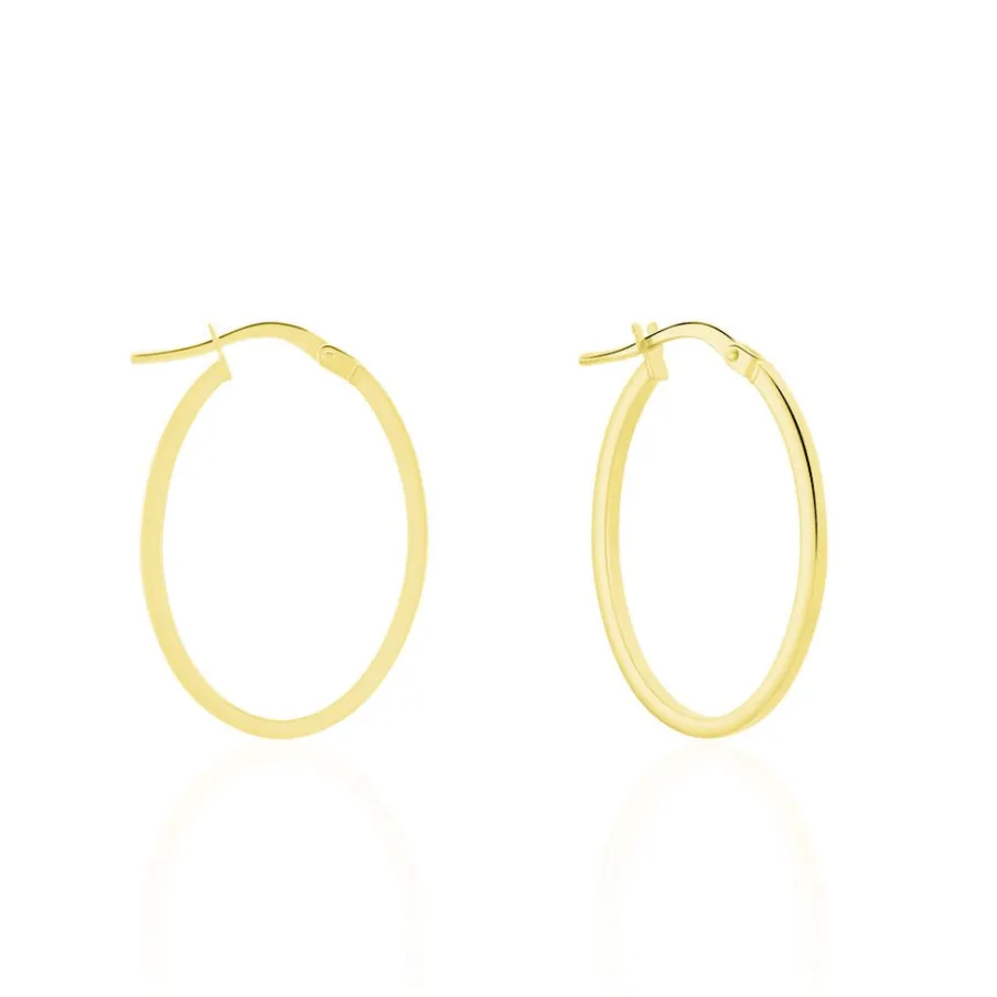 Créoles Or Jaune 375/1000 Ovales Fil Carré Lisse Largeur 1.5mm Diamètre 15x23mm