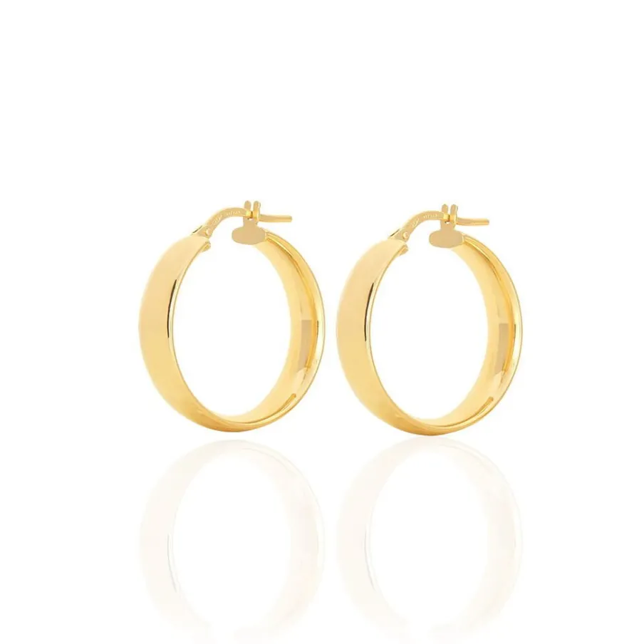 Créoles Or Jaune 375/1000 Fil Demi Jonc Lisse Largeur 6mm Diamètre 20mm