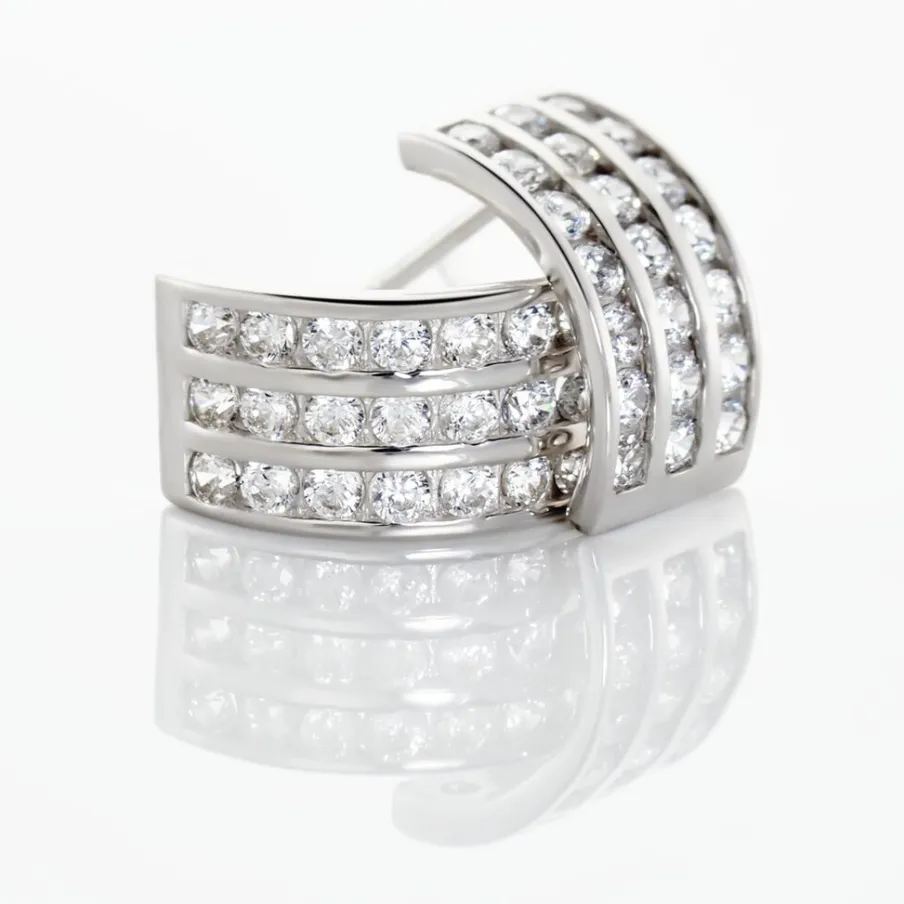 Demi Créoles Or Blanc 375/1000 Oxyde De Zirconium Serti Pavage