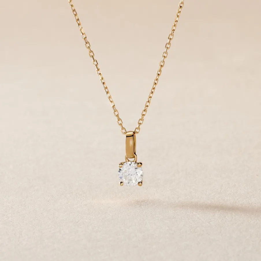 Pendentif Solitaire Or Jaune 375/1000 Diamant 0.35cts Serti 4 Griffes