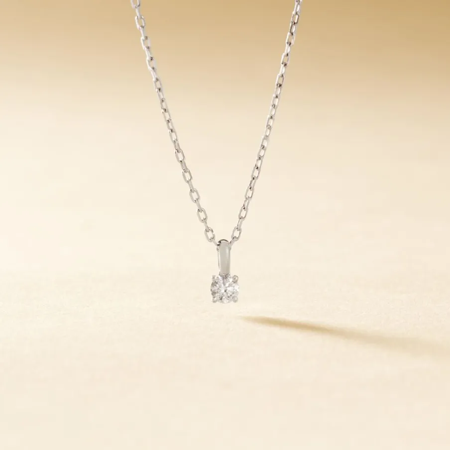 Pendentif Solitaire Or Blanc 375/1000 Diamant 0.25cts Serti 4 Griffes