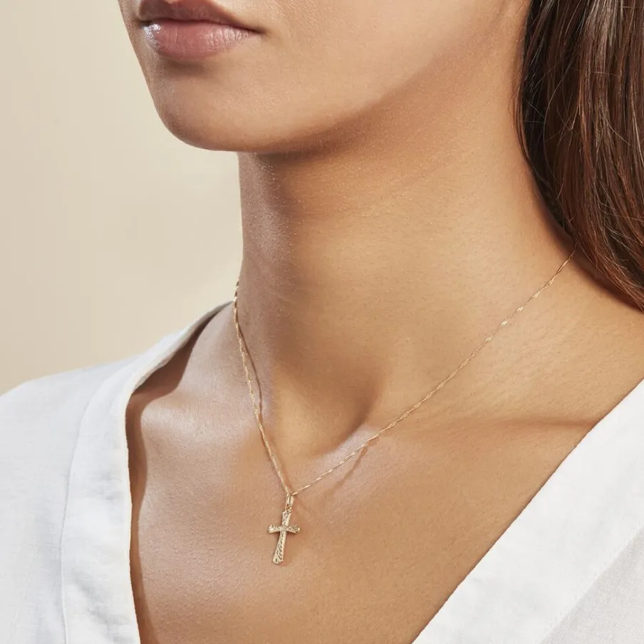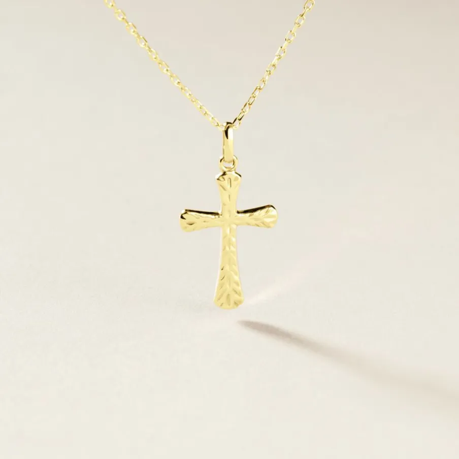 Pendentif Or Jaune 375/1000 Motif Croix Religieuse Striée