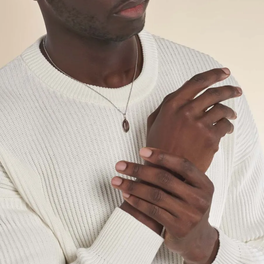 Pendentif Argent Blanc 925/1000 Forme Ballon De Rugby