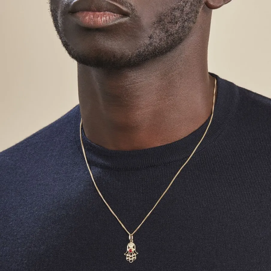 Pendentif Or Jaune 375/1000 Motif Main De Fatma Ajouree Oxyde De Zirconium Rouge