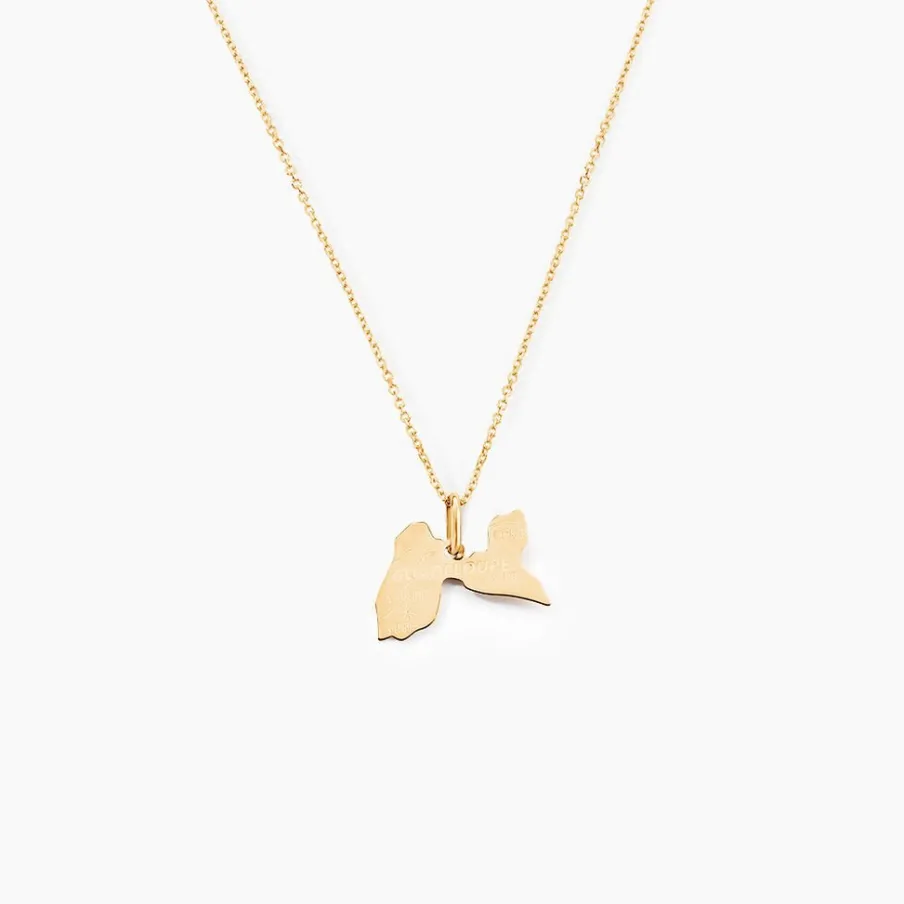 Pendentif Or Jaune 750/1000 Carte Guadeloupe Avec Villes 1.2cm