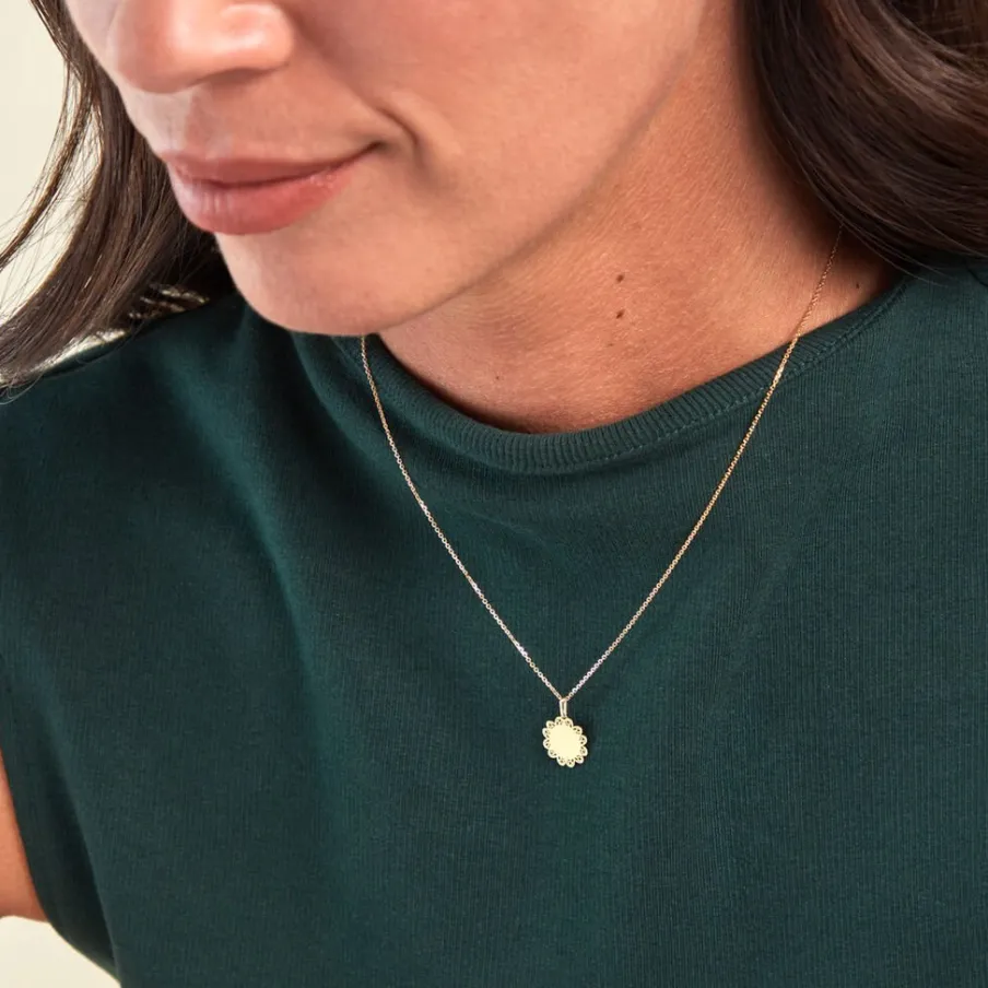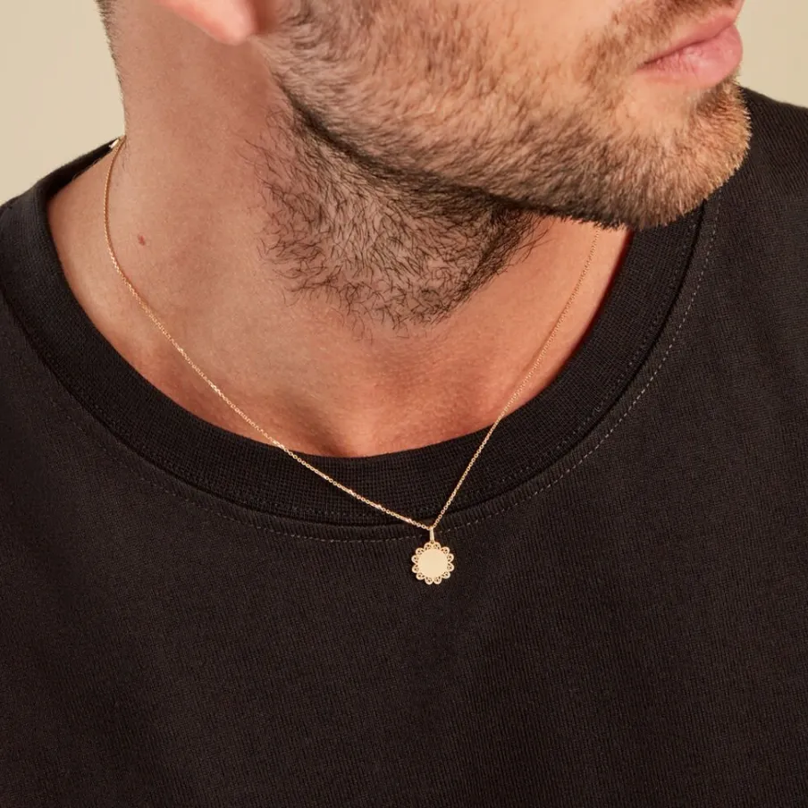 Pendentif Or Jaune 375/1000 Pastille Contour Filigrane Gravable Diametre 11.3mm