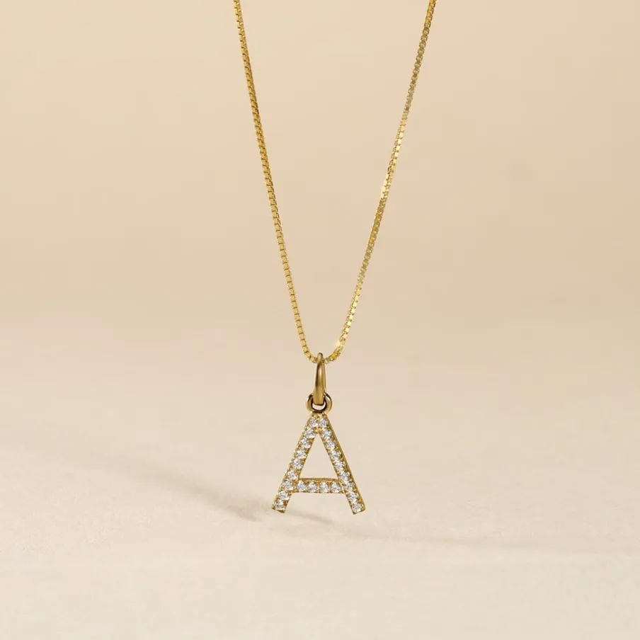 Pendentif Or Jaune 375/1000 Lettre A Oxydes De Zirconium Serti Griffes