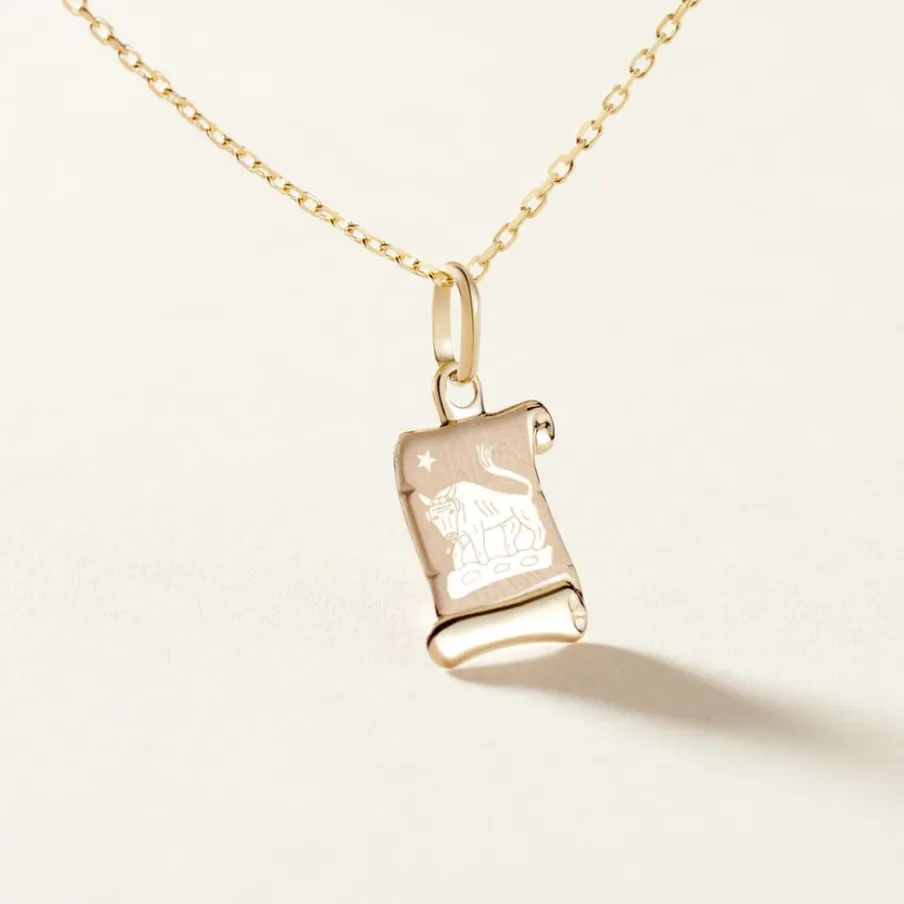 Pendentif Parchemin Or Jaune Signe Zodiaque Taureau