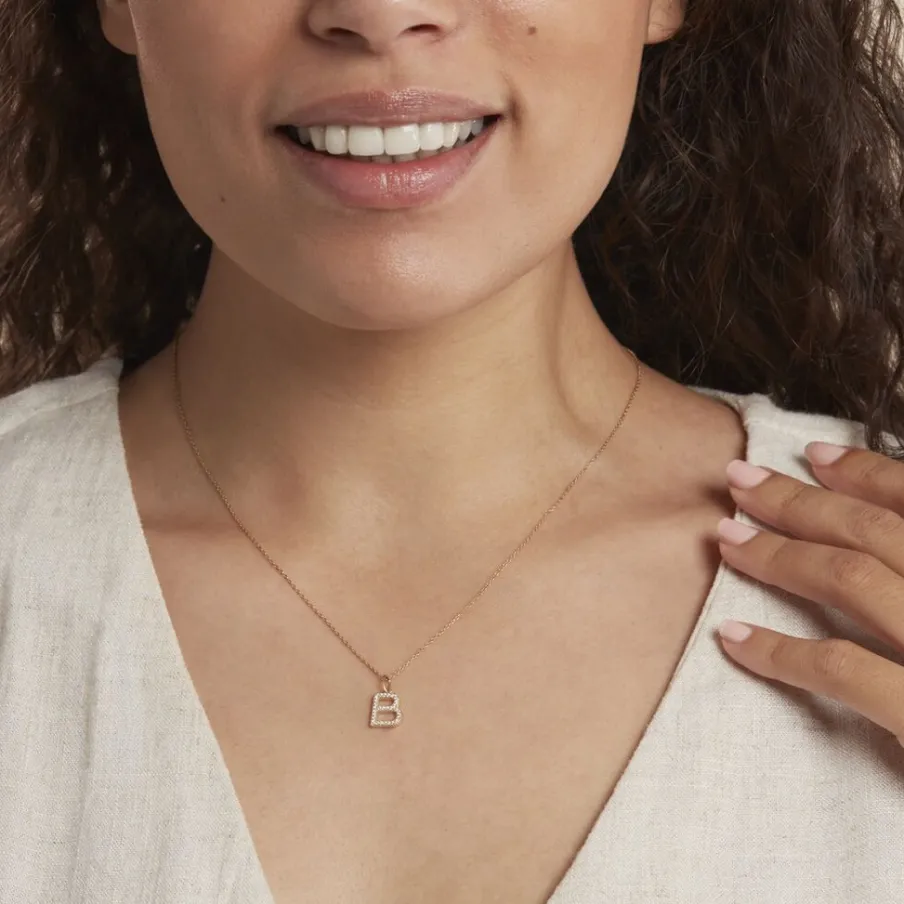 Pendentif Or Jaune 375/1000 Lettre B Oxydes De Zirconium